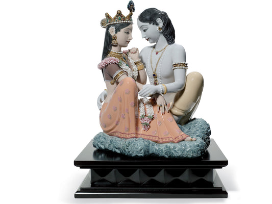 • This stunning new edition to the Lladro lithophane collection features an Indian couple on their wedding day . Perfectly complimenting the lavish and luxurious occassion, the bride is wearing the traditional lehenga and the groom a sherwani as they hold hands in a sign of unity and an everlasting bond. This beautiful pattern is perfectly captured in the intricate etching of the translucent lithophane, making a stunning addition to any lithophane collection.