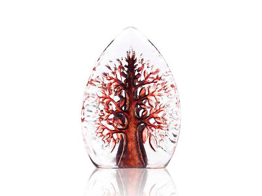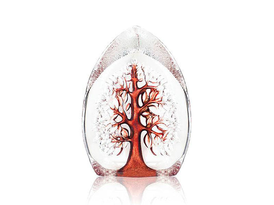 • The Maleras Nordic Icon Yggdrasil Tree of Life Miniature Red is a clear crystal ornament with a red tree design