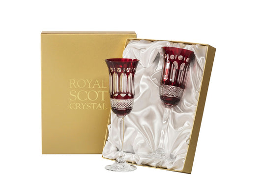 Royal Scot Crystal Belgravia Champagne Flutes - Ruby Red / Pair