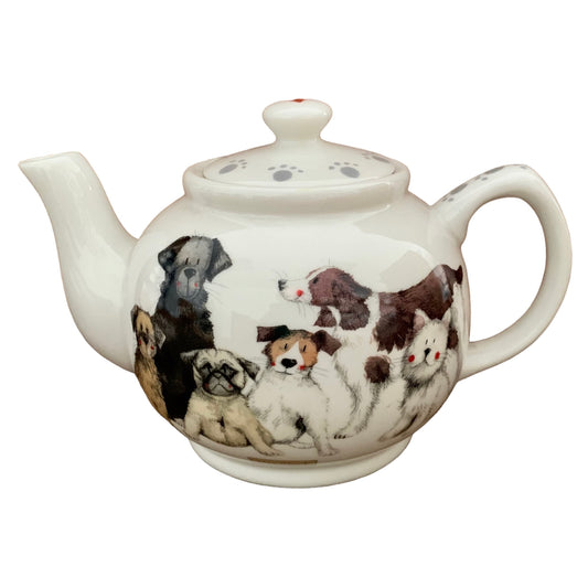 • This Alex Clark adorable teapot is illustrated with a lovey array of beautiful dogs.  There is also a matching tea bag tidy & mugs in the same illustration.