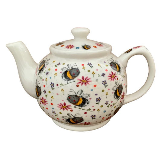 • This Alex Clark adorable teapot is illustrated with bumble bees in a meadow of flowers.  There is also a matching tea bag tidy & mugs in the same illustration.