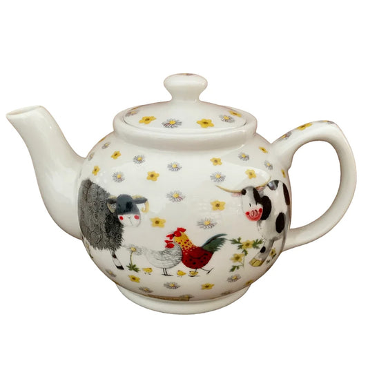 • Alex Clark teapot is illustrated with an assortment of farm animals.  There is also a matching tea bag tidy & mugs in the same illustration.