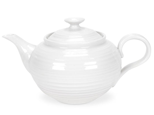 • This Sophie Conran teapot has been made from a white porcelain that has been finished in a clear glaze. It is designed with Sophie's textured rippling effect, and holds over 1 litre's worth of tea.