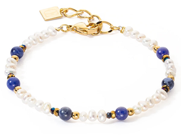 Elevate your style with the timeless elegance of the Flow bracelet, featuring a stunning combination of lustrous freshwater pearls, enchanting sodalite gemstones, and intricate gold accents. This exquisite bracelet brings a perfect balance of luxury and sophistication, making it an ideal accessory to enhance any outfit.
