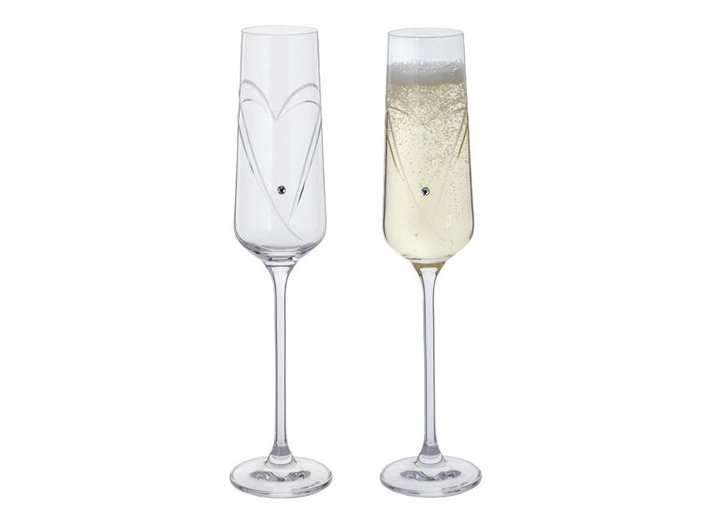 Ideal for marking anniversaries or special occasions, these flutes are adorned with a single Swarovski® crystal, showcasing a charming heart motif. Crafted by hand from lead-free crystal, they are both elegant and durable,