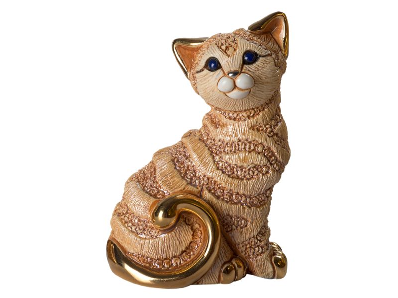 Each De Rosa product is a statement of skill and precision; all handmade and decorated to the highest of standards and ensuring no two products are ever carved exactly the same, creating a one of a kind ceramic figurine. This De Rosa Ginger Cat has a beautiful orange coat and unique design, topped of with gold finishings.