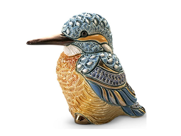 Discover the exquisite porcelain Kingfisher from the De Rosa Collections. Each piece is handcrafted in Uruguay, featuring unique hand-carved and hand-painted designs. No two figurines are alike, with elegant accents of platinum, gold, and vibrant enamel glazes, showcasing exceptional artistry and quality. Perfect for adding timeless beauty to any collection.
