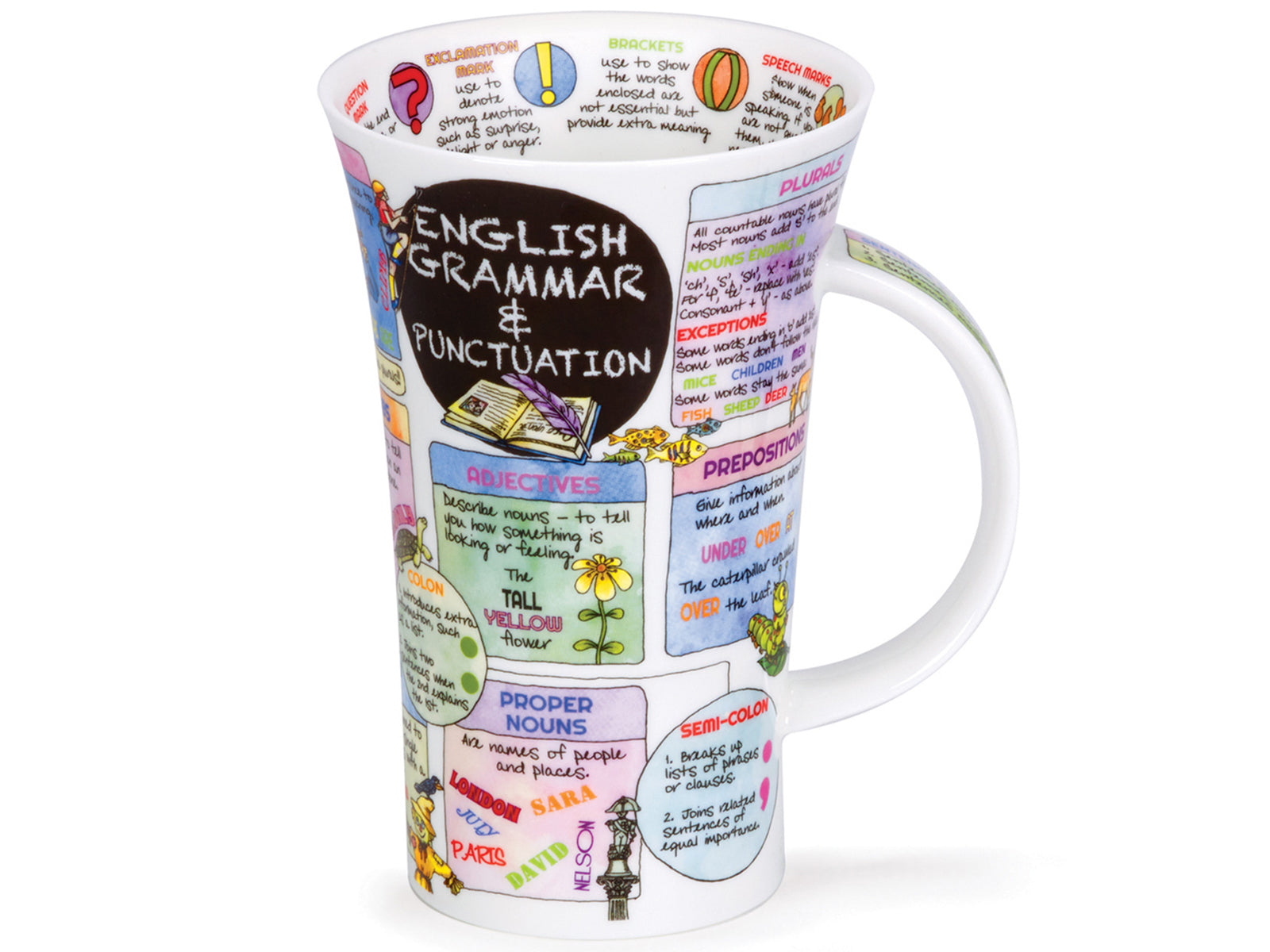 Dunoon's Glencoe 'English Grammar & Punctuation' Mug is crafted of a fine bone china and offers its user an opportunity to brush up on their grammatical skills, defining all the different categories words fall into and how these can be used correctly in your speaking and writing. This acts as the perfect gift for the avid reader, writer, or crossword connoisseur.