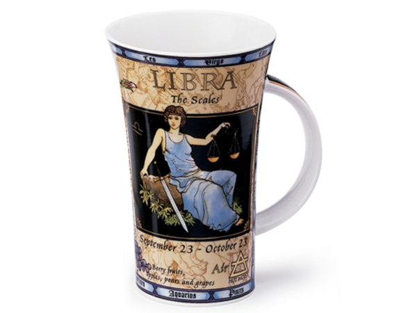 The "Zodiacs" collection by Jack Dadd features 12 beautifully handcrafted mugs made from fine china, each vibrantly coloured and embellished with 22-carat gold. These mugs represent the astrology, dates, and meanings of each zodiac sign. The Libra mug, symbolizing the Scales, also details the specific traits that individuals born under the Libra star sign may possess.