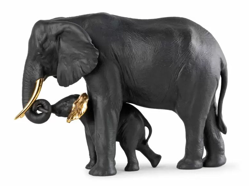 This Boldblack reimagining of Lladro's Leading The Way sculpture is a beautiful homage to elephant's maternal bonds. The matte black porcelain mimics the texture of elephant's hide, while the gold lustre details add a deep dimension to the piece.
