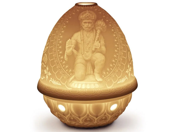This amazing porcelain Lithophane Votive depicts Hanuman, the heroic monkey God of Hinduism. The engraved details are wonderfully defined when lit. This piece is just one of the beautiful lithophanes we offer in our lithophane collection.