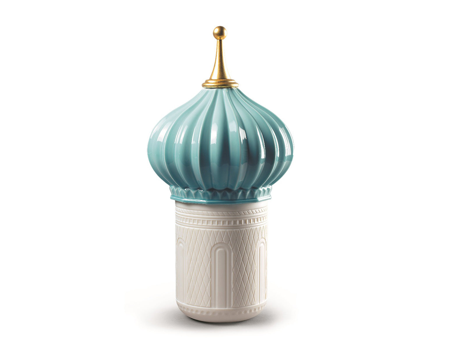 This Lladro candle has a translucent porcelain base that lets a soft light glow through. The elaborate blue dome however really makes this piece stand out.