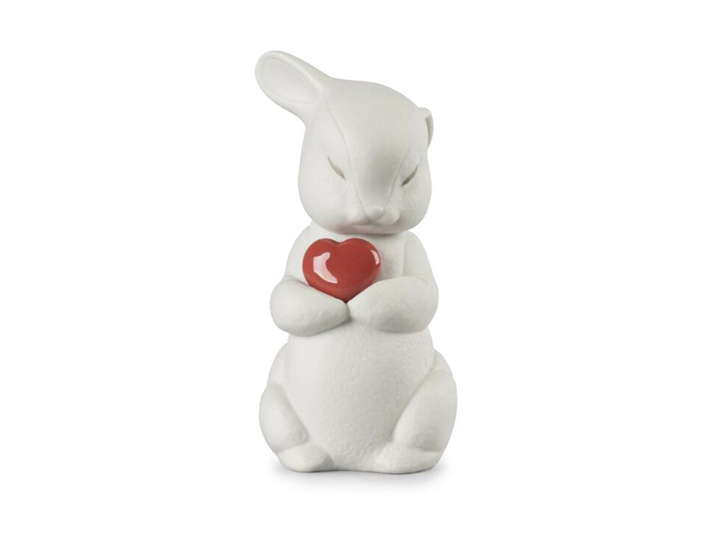 Meet Puffy, the extremely generous Rabbit, always around to help others. Made in white porcelain holding a stunning vibrant red heart. This figurine would make a beautiful thank you present.