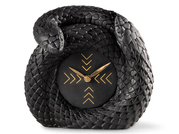 Discover the exquisite Matte Black Porcelain Table Clock within our exclusive Snakes Collection. Snakes, known for their captivating allure, have long been a source of both fascination and trepidation, intriguing the human imagination. Across diverse cultures, these enigmatic creatures hold profound symbolism, representing the eternal cycle of life, embodying wisdom, knowledge, spirituality, and serving as potent symbols of power and protection.
