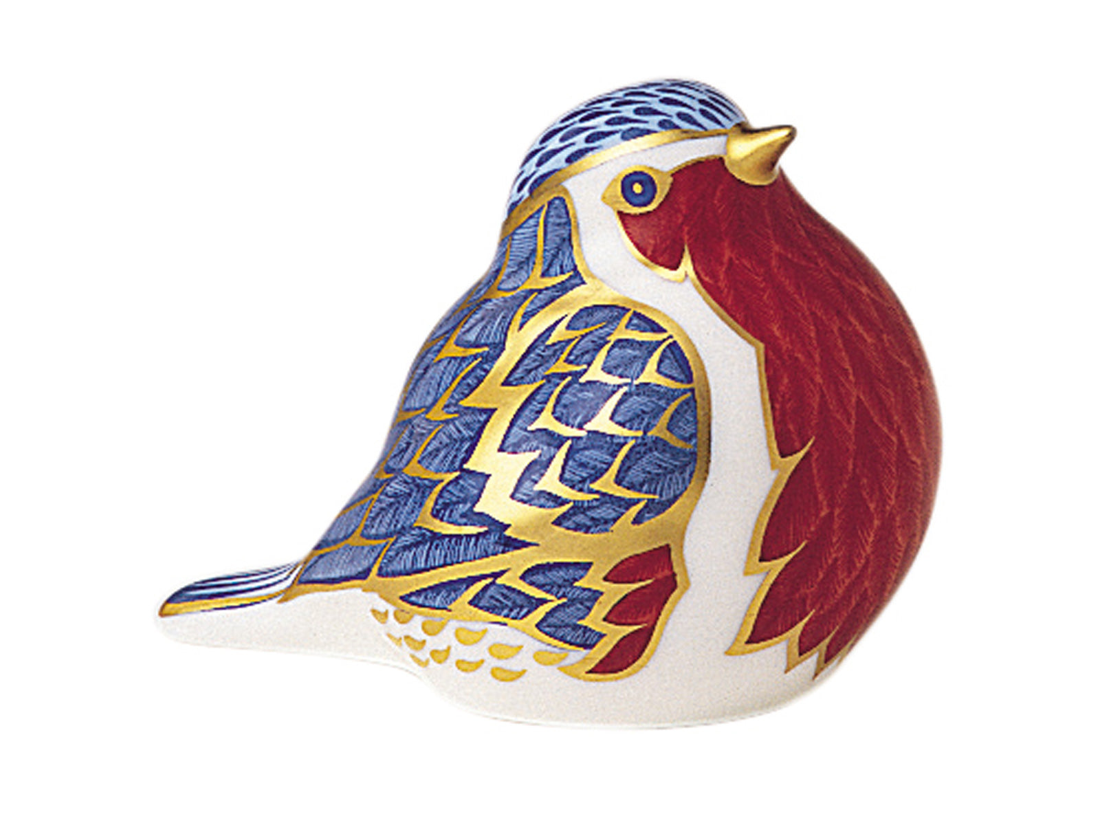 Royal Crown Derby Robin Designed by Jo Ledger This cute bird is our most popular paperweight ever produced. Add this cheery chap to your collection and he will always make you smile. The design incorporates a palette of rich red and blue and the Robin is perfectly finished with 22 carat gold details. Established in 1750, Royal Crown Derby is one of the oldest porcelain manufacturers in the UK. It's known particularly for its high-quality bone china tableware and collectables.