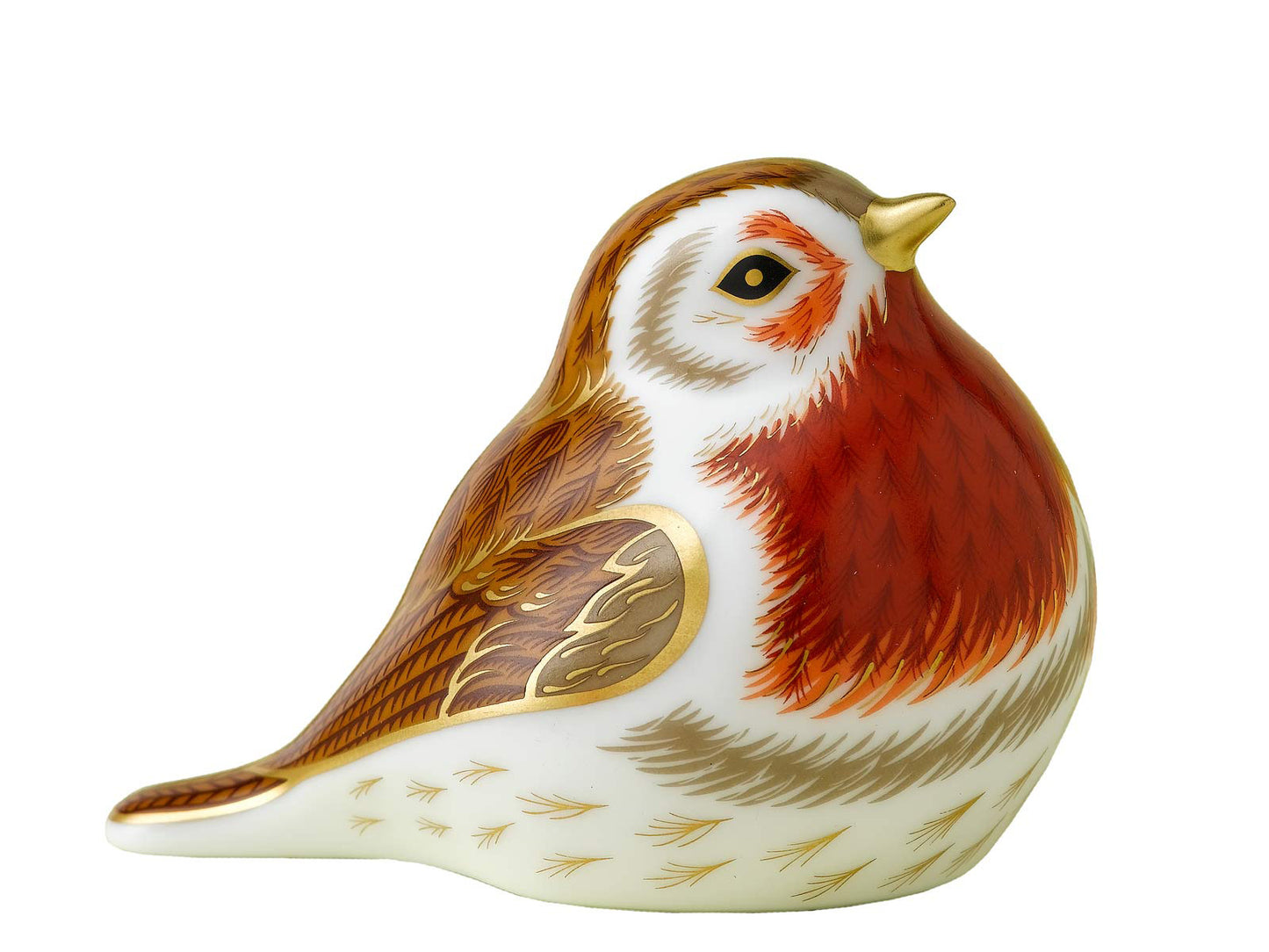 Royal Crown Derby Royal Robin This beautiful new Robin is decorated with the same fabulous red breast, but this time the wings and plumage have been decorated in tones of earthy brown and amber. Delicate gold flecks in 22 carat gold create a textured look for this delicate new piece. Established in 1750, Royal Crown Derby is one of the oldest porcelain manufacturers in the UK. It's known particularly for its high-quality bone china tableware and collectables.