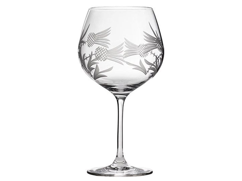 This delicate crystal gin copa elegantly highlights the botanical flavours of your gin with its delicate thistle design. Royal Scot's artisans have engraved the Flower of Scotland pattern into the exterior by hand, giving a soft frosted finish to the glass. This gin balloon would make a lovely birthday gift for any Scottish gin lover. This glass is also available as a: Set of 2
