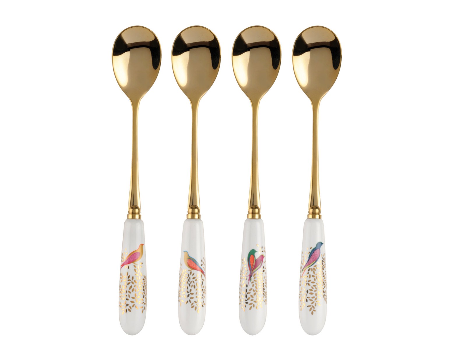 These Sara Miller London Chelsea Tea Spoons come as a beautifully boxed set of four. With gold spoons and white porcelain handles, they are a unique piece to add to your tea set. These exotic teaspoons are decorated with 22 carat gold leaves and brightly coloured birds. They are a quirky take on the kitchen basic! They would make a lovely thank you gift, or a beautiful treat for your everyday.